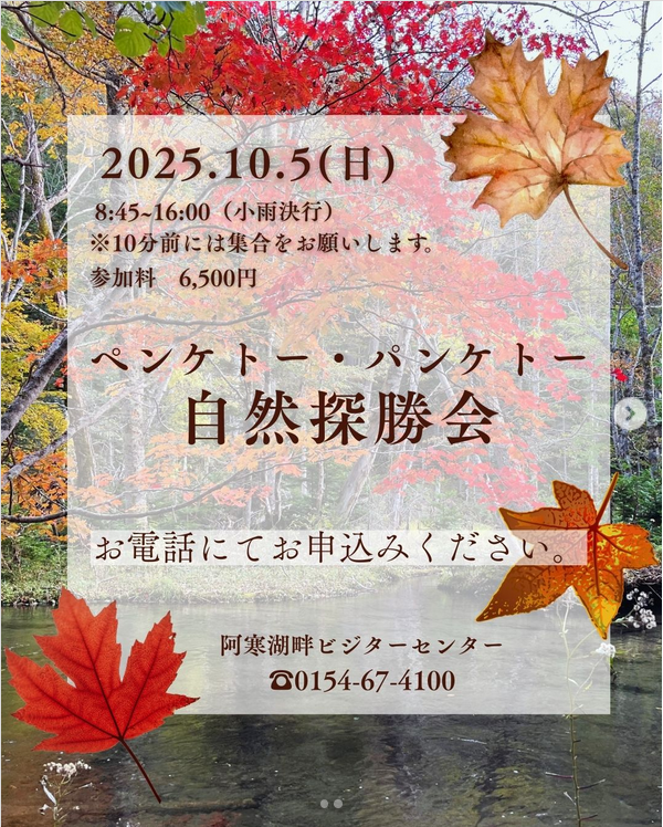 [申込み先・問い合わせ先] 阿寒湖畔ビジターセンター TEL:0154-67-4100