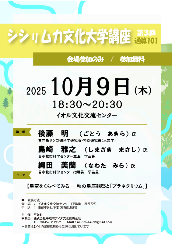 【平取】シシリムカ文化大学講座「星空をくらべてみる-秋の星座観察と“プラネタリウム”」