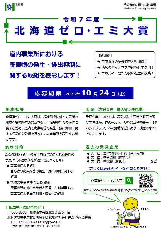 【募集】令和7年度 北海道ゼロ・エミ大賞の募集について(締切 10/24)