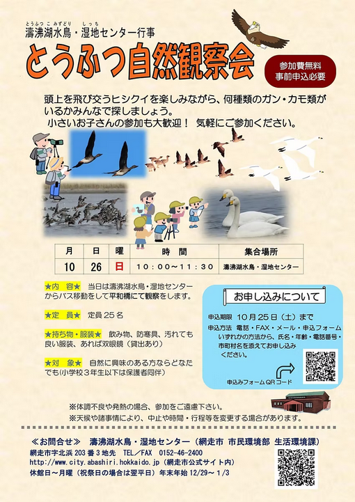 [主催] 濤沸湖水鳥・湿地センター(網走市 市民環境部 生活環境課)