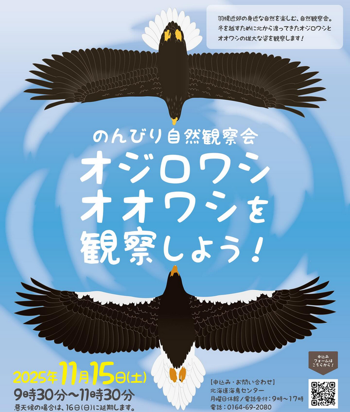 【羽幌】のんびり自然観察会「オジロワシとオオワシを観察しよう!」