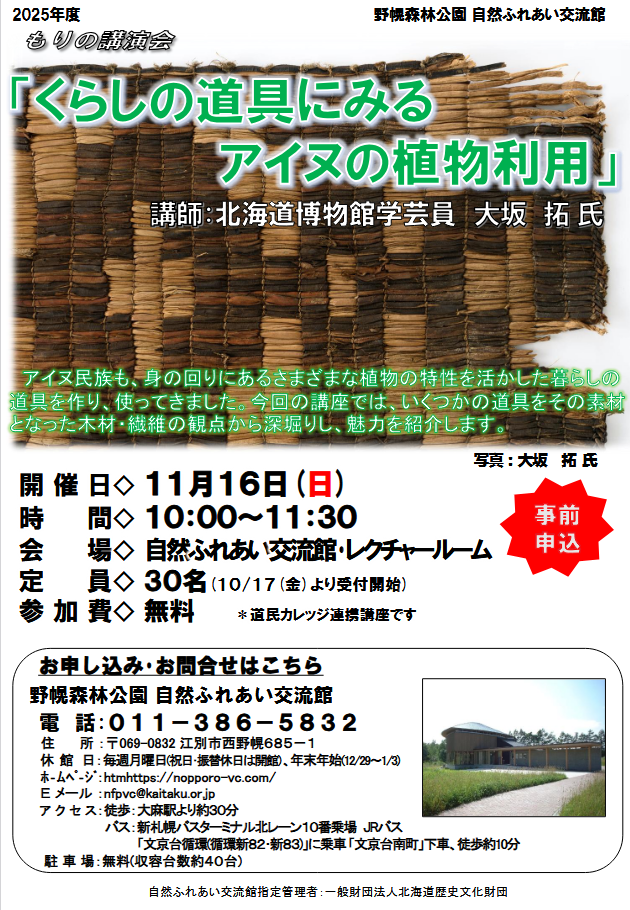 【江別】2025年度 もりの講演会「くらしの道具にみるアイヌの植物利用」