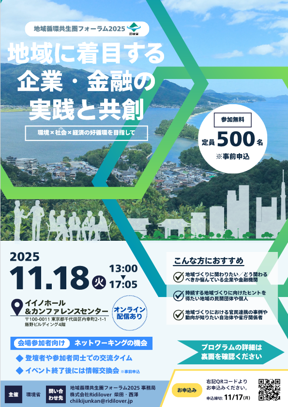 [問い合わせ先] 地域循環共生圏フォーラム2025 事務局:(株)Ridilover(担当:柴田、西澤)