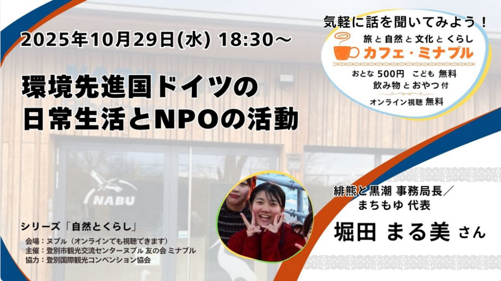 【登別・オンライン】気軽に話を聞いてみよう!カフェ・ミナプル「環境先進国ドイツの、日常生活とNPOの活動」