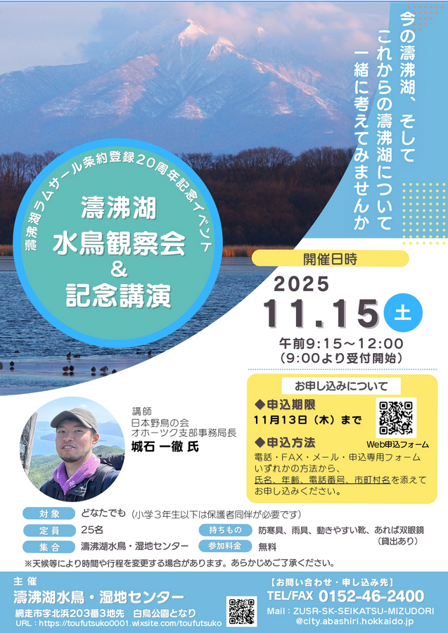 [申込み先・問い合わせ先] 濤沸湖水鳥・湿地センター