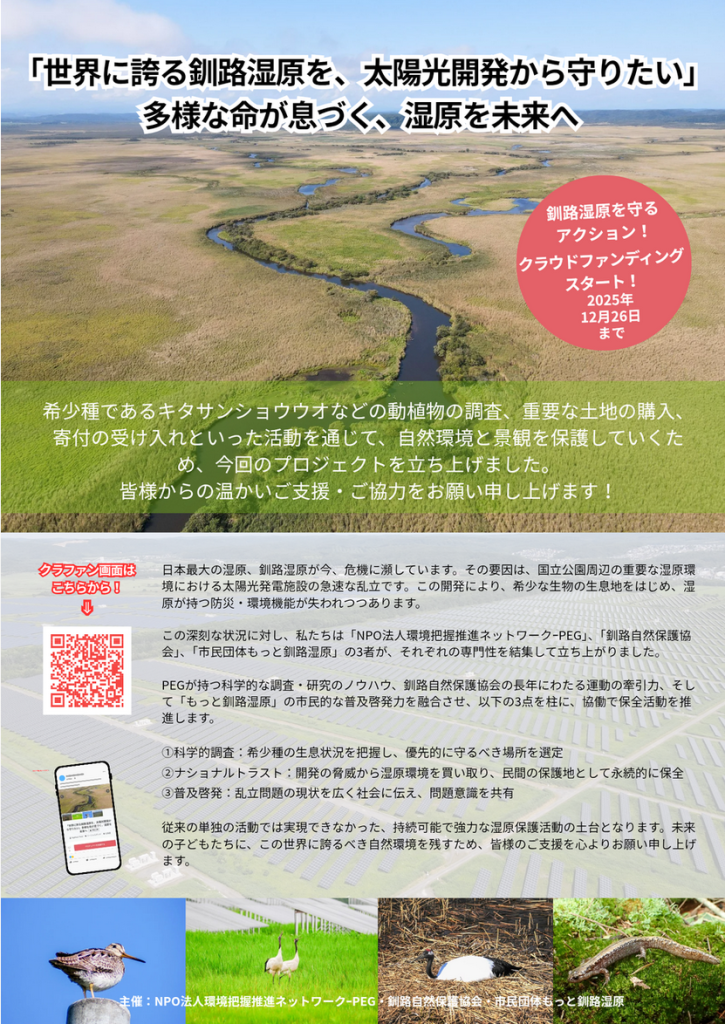 【クラウドファンディング】釧路湿原を守るアクション!「世界に誇る釧路湿原を、太陽光開発から守りたい」~多様な命が息づく、湿原を未来へ~(締切 12/26)