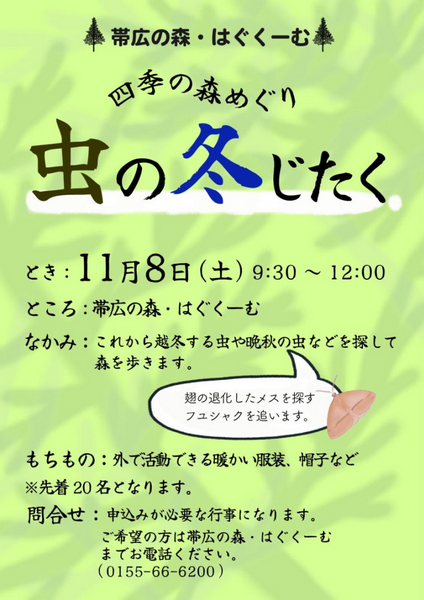 【帯広】四季の森めぐり ~虫の冬じたく~