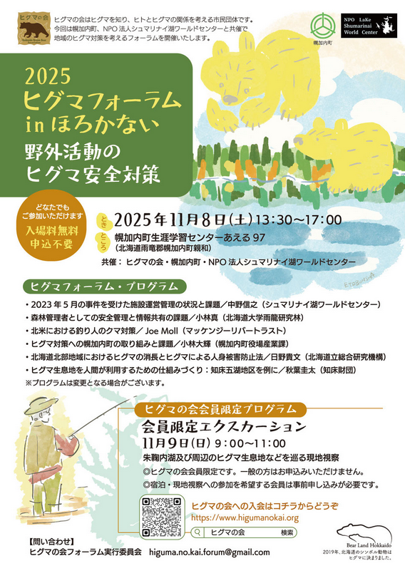 [問い合わせ先] ヒグマの会フォーラム実行委員会 E-mail:higuma.no.kai.forum@gmail.com