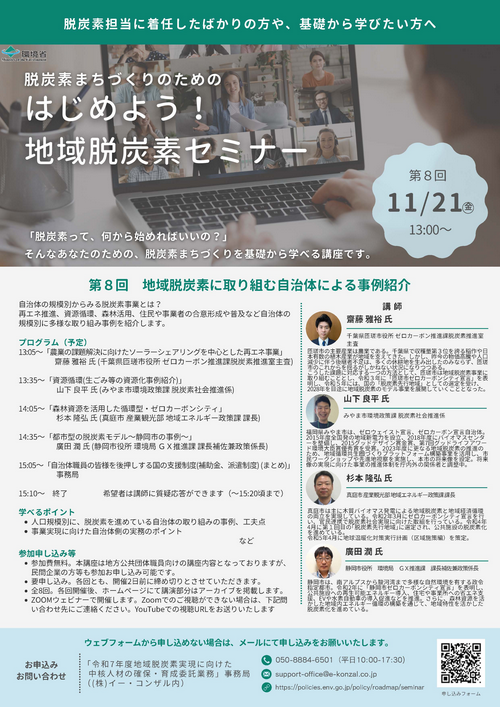 【オンライン】はじめよう!地域脱炭素セミナー 第8回「地域脱炭素に取り組む自治体による事例紹介」