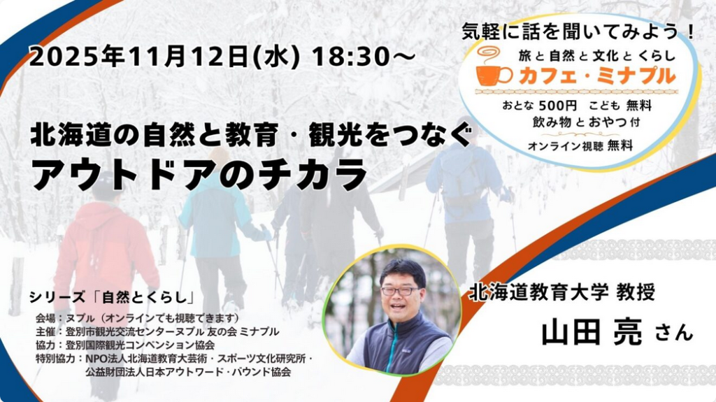 【登別・オンライン】気軽に話を聞いてみよう!カフェ・ミナプル「北海道の自然と教育・観光をつなぐアウトドアのチカラ」
