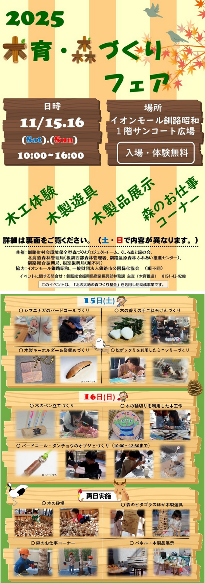 [問い合わせ先] 釧路総合振興局 産業振興部 林務課 主査(木育推進) TEL:0154-43-9208