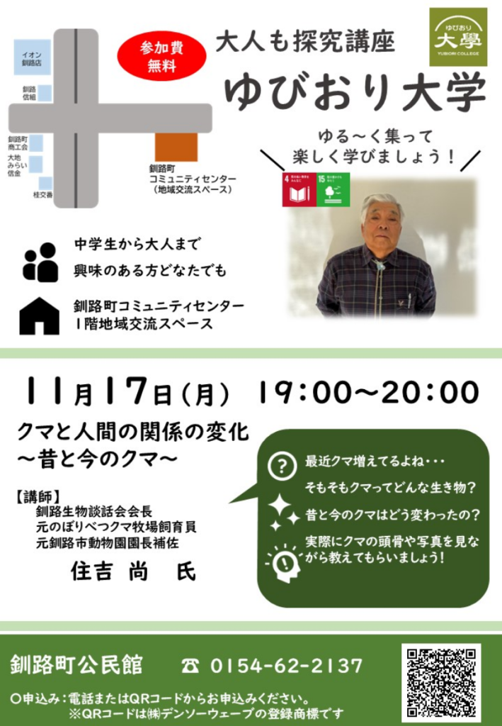 【釧路】公民館講座「クマと人間の関係の変化 ~昔と今のクマ~」