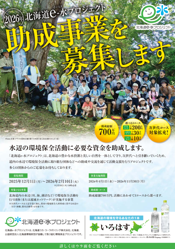【助成金】2026年「北海道e-水プロジェクト」助成事業を募集します!(締切 2/10)