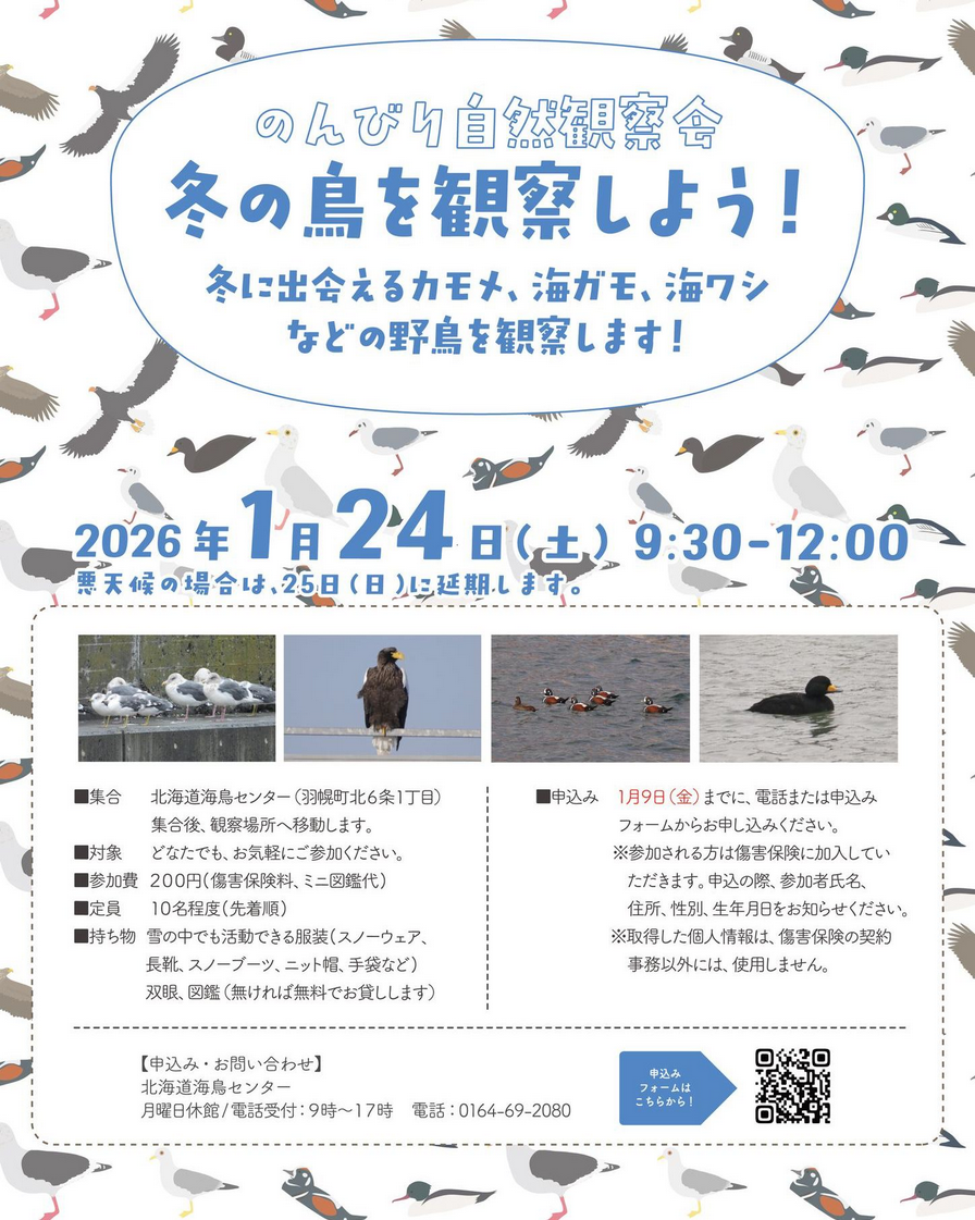 [申込み先・問い合わせ先] 北海道海鳥センター TEL:0164-69-2080