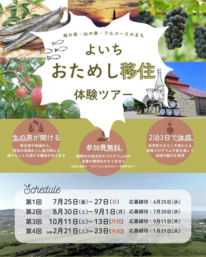 北海道・余市町 で、地域おこし協力隊や移住者と直接交流し、余市町での生活を2泊3日で体験できる 参加無料 の「おためしツアー」を開催!