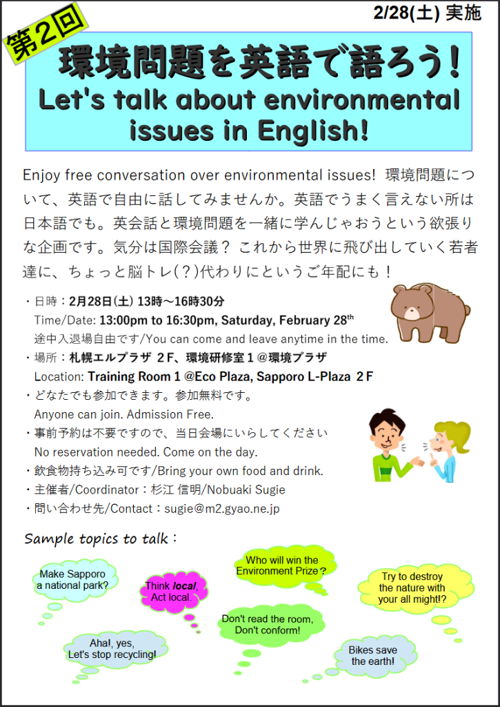 英会話と環境問題を一緒に学んじゃおうという欲張りな企画です。
