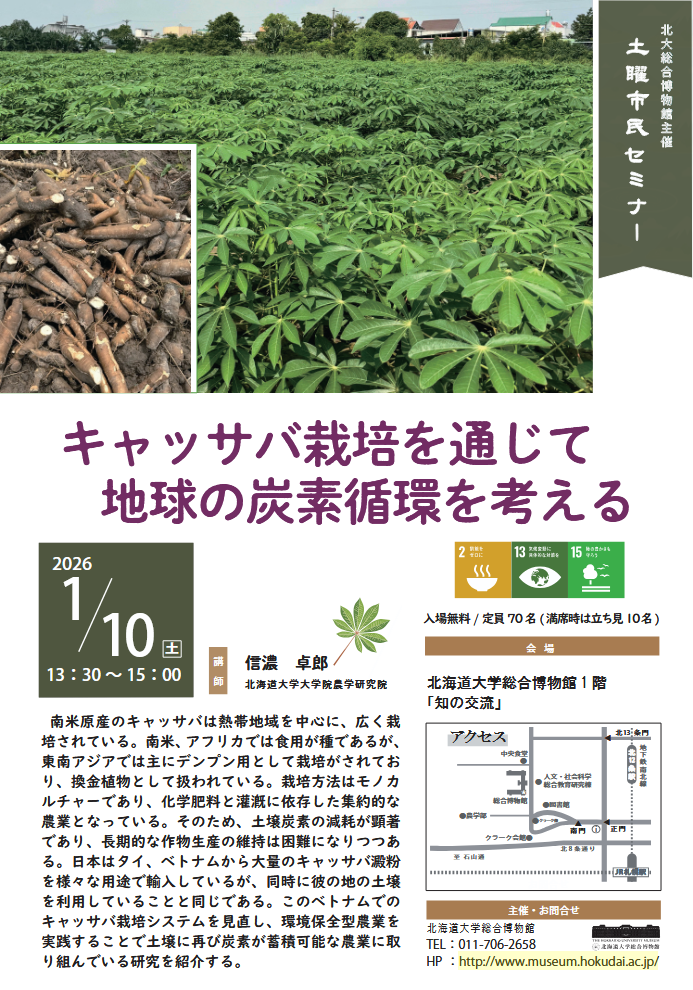 【札幌】2025年度第10回 土曜市民セミナー「キャッサバ栽培を通じて地球の炭素循環を考える」
