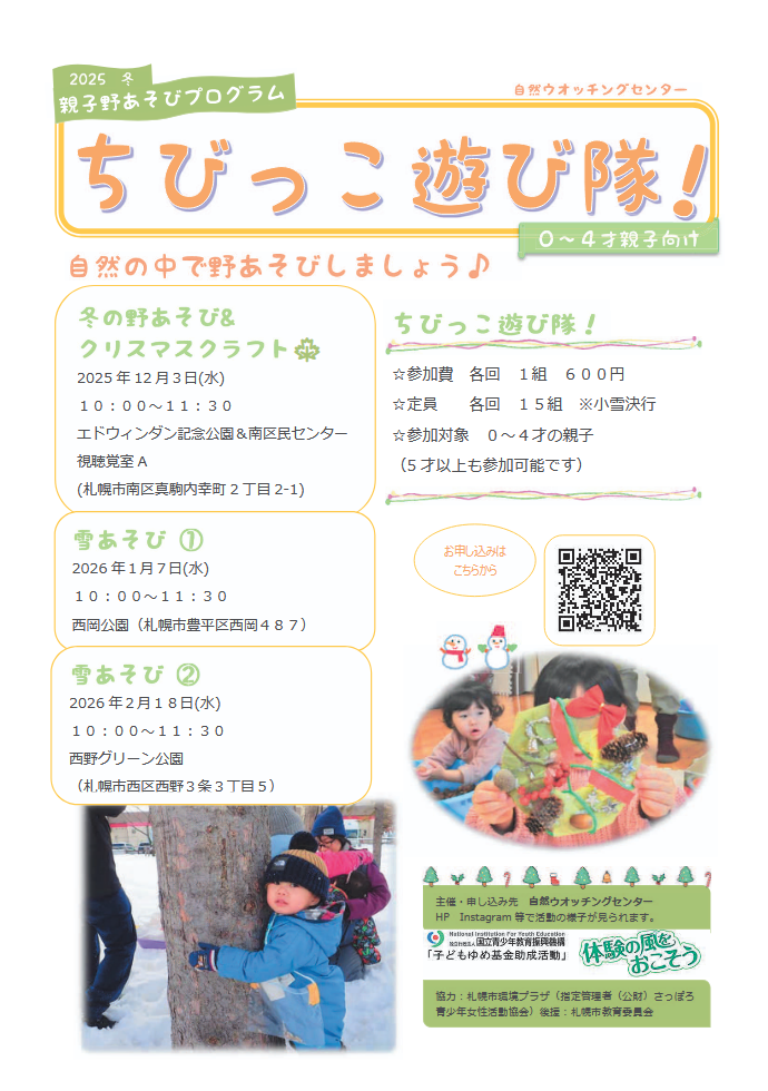 【札幌】親子野あそびプログラム「ちびっこ遊び隊!」:雪あそび♪
