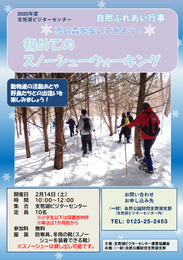 [申込み先・問い合わせ先] (一財)自然公園財団 支笏湖支部(支笏湖ビジターセンター内)