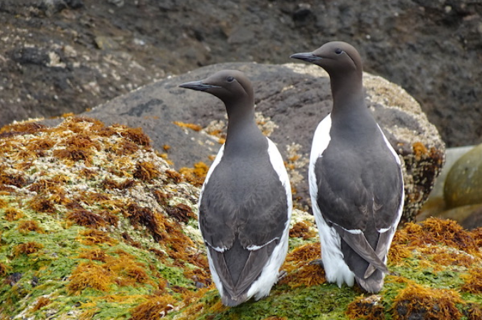 岩礁に止まるウミガラス(オロロン鳥)