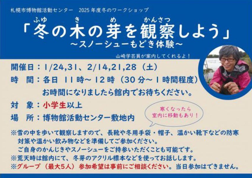 【札幌】ワークショップ「冬の木の芽を観察しよう ~スノーシューもどき体験~」