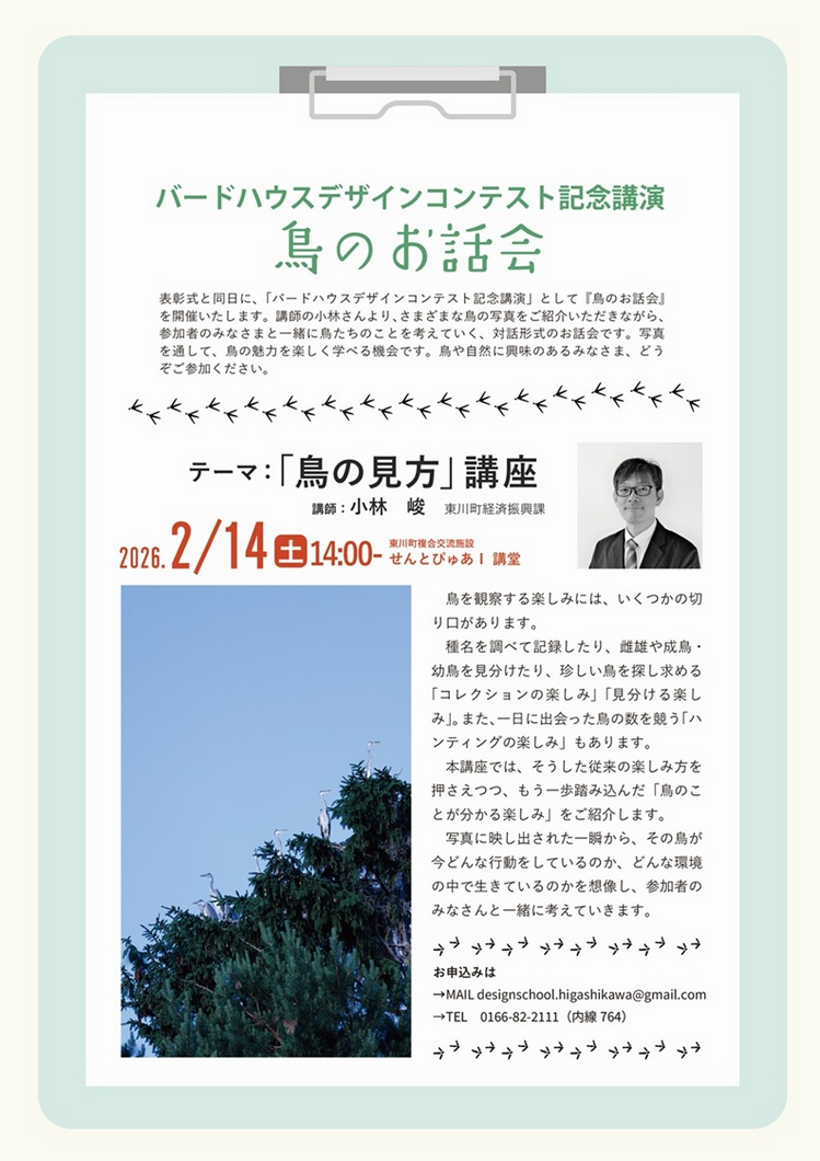 【東川】東川町バードハウスデザインコンテスト記念講演『「鳥の見方」講座』