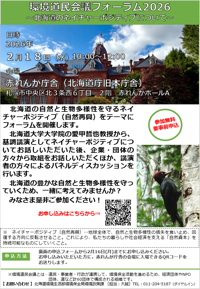 【札幌】環境道民会議フォーラム2026 ~北海道のネイチャーポジティブについて~