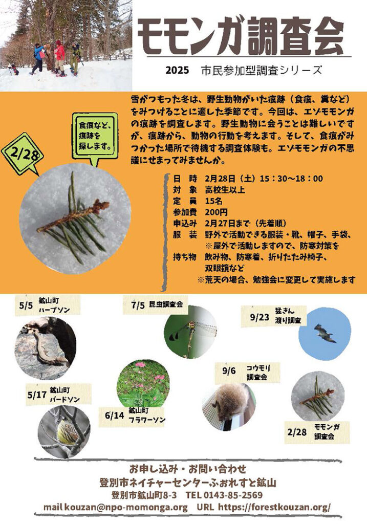 [主催] 登別市ネイチャーセンター ふぉれすと鉱山(指定管理者:NPO法人登別自然活動支援組織モモンガくらぶ)