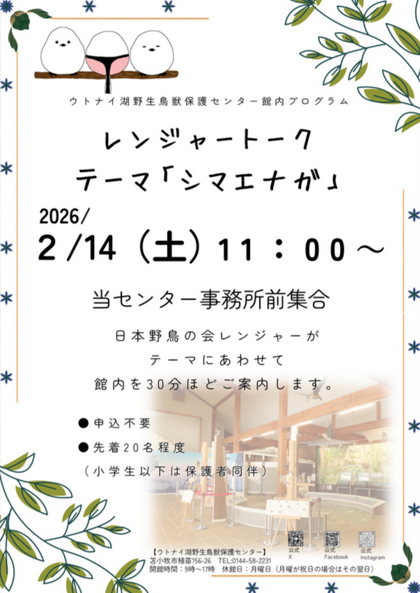 [問い合わせ先] ウトナイ湖野生鳥獣保護センター TEL:0144-58-2231