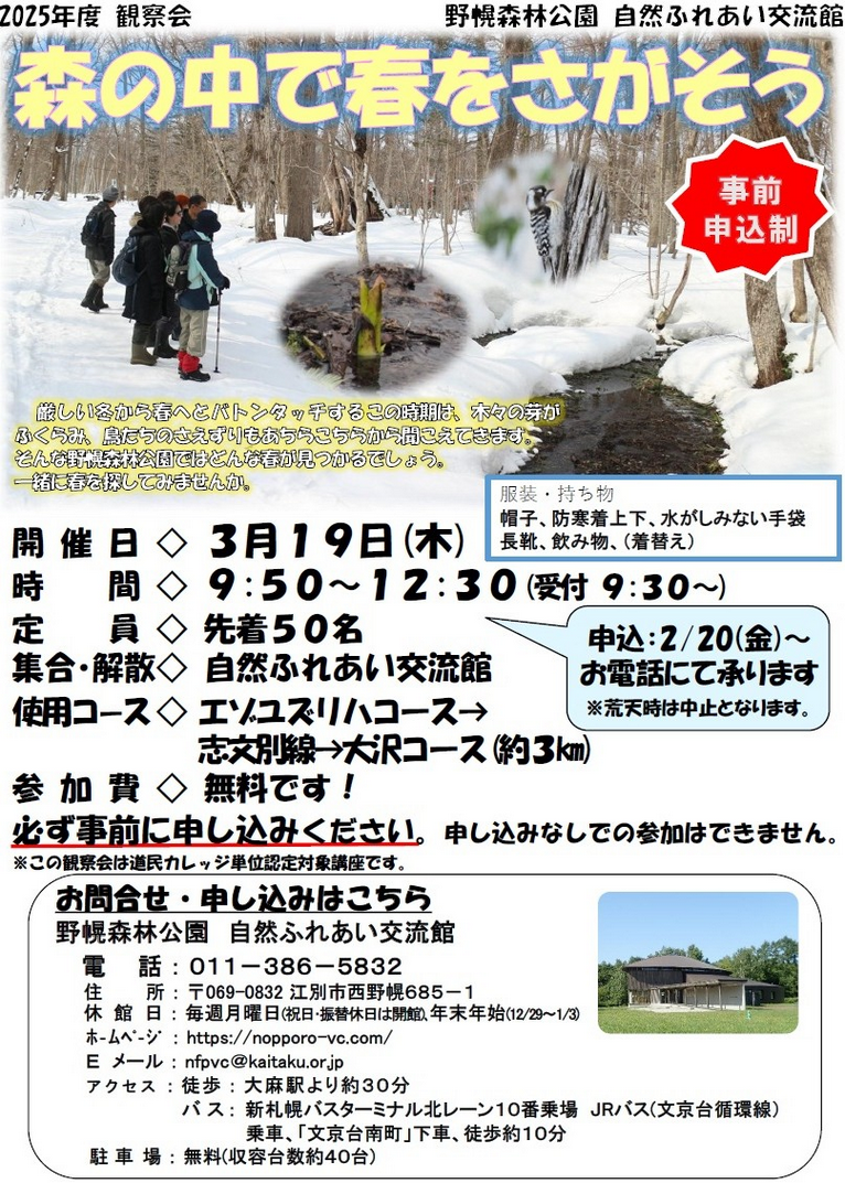 [申込み先・問い合わせ先] 自然ふれあい交流館 TEL:011-386-5832