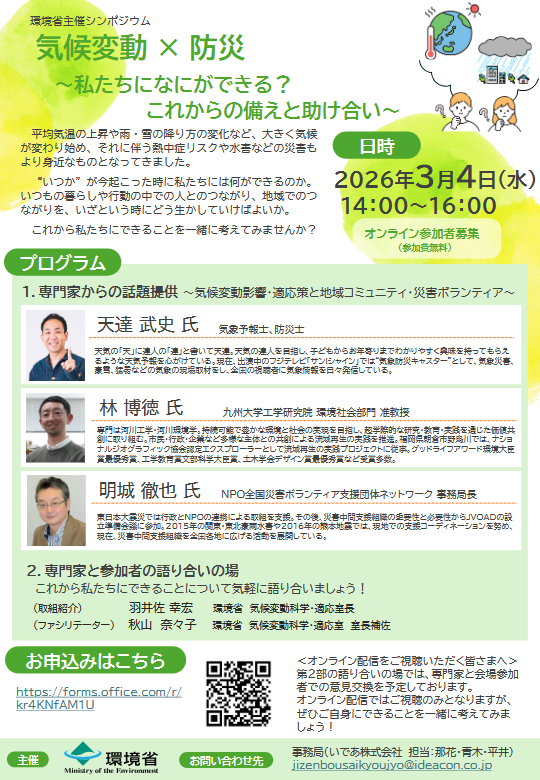 【オンライン】シンポジウム「気候変動×防災 ~私たちになにができる?これからの備えと助け合い~」