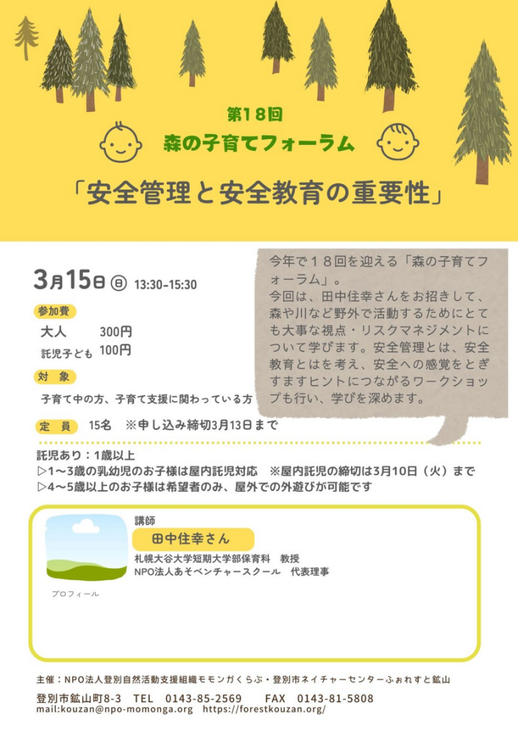 【登別】第18回 森の子育てフォーラム「安全管理と安全教育の重要性」