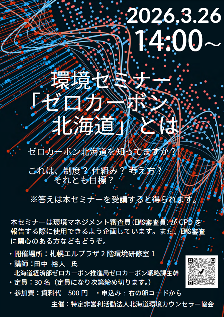 [申込み先・問い合わせ先] NPO法人北海道環境カウンセラー協会(事務局:環境保全委員会)