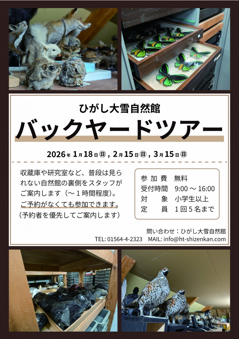 収蔵庫や研究室など、普段は見られない ひがし大雪自然館 の裏側をスタッフがご案内します!