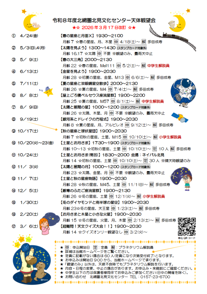※天候不良の場合は、プラネタリウムでの解説のみ実施します。