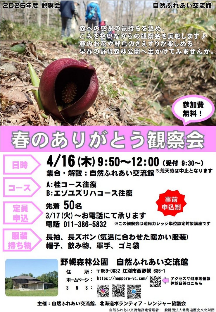 [申込み先・問い合わせ先] 自然ふれあい交流館 TEL:011-386-5832