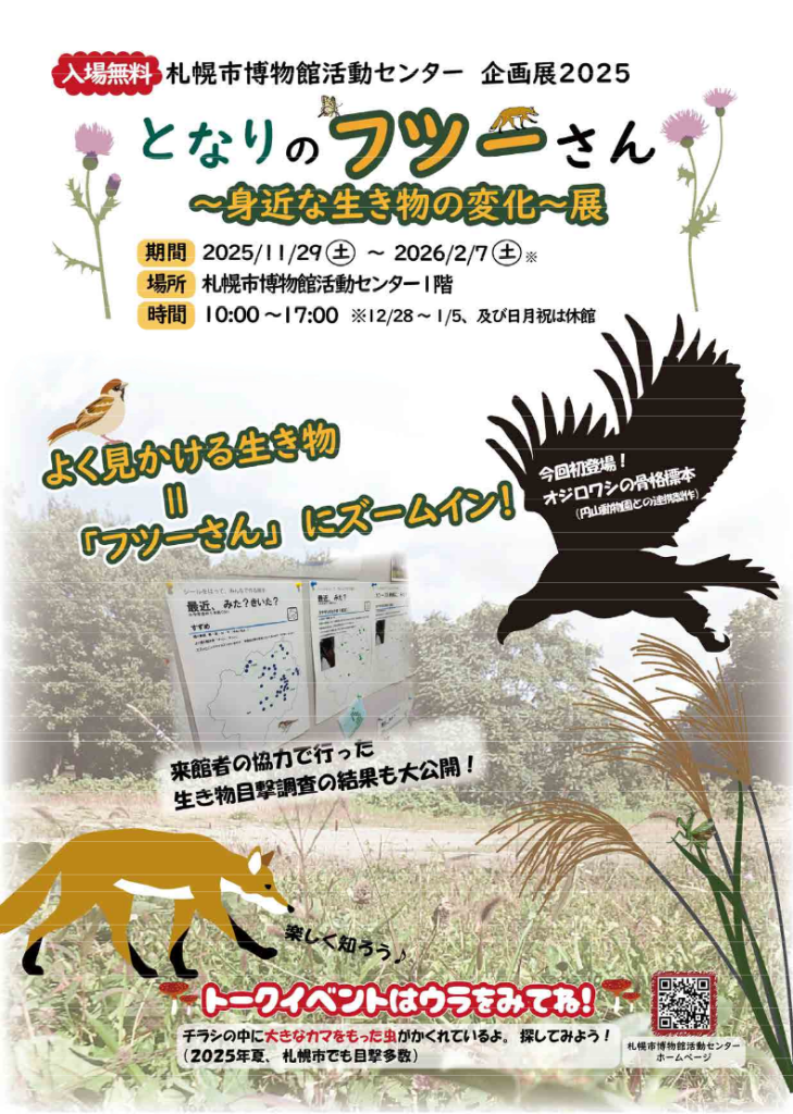 【ご案内】札幌市博物館活動センター 企画展「となりのフツーさん~身近な生き物の変化~展」