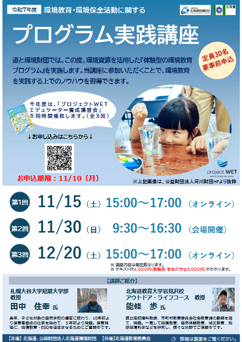 【オンライン・札幌】令和7年度 環境教育・環境保全活動に関するプログラム実践講座 <全3回>