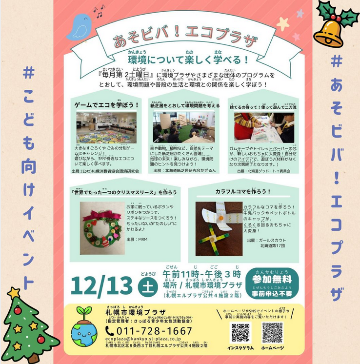 【12/13 札幌】\環境について楽しく学べる/ 札幌市環境プラザ「あそビバ!エコプラザ」